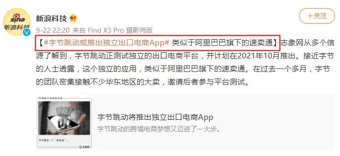 据悉,早在今年9月份就有消息称,字节跳动正在测试独立的出口电商平台,并计划于今年10月推出。而根据当时的消息透露,这个独立应用将类似于阿里巴巴旗下的速卖通,字节团队还密集接触了不少华东地区的大卖,邀请他们参与平台测试。如今来看,或许正是Fanno。