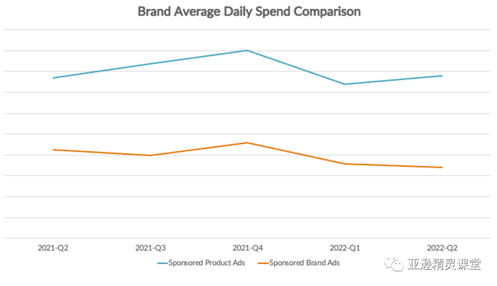 品牌推广 ROAS 在 2022 年第二季度略有下降,环比下降 0.7%,同比下降 2.6%,平均为 4.07。同样,商品推广广告的 ROAS 环比下降 4.4%,同比下降 2.5%,平均为 4.59。平均每日花费对比![]()