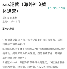 据了解,目前拼多多出海团队大约200人左右,远远不能满足实际需求。在此之前,不少媒体称,拼多多以原薪资2-3倍的力度,挖走了SHEIN的一批员工,组成了其海外业务团队的主体。也有相关消息称,Temu项目在筹备阶段就有针对性地接触过SHEIN员工,多位SHEIN员工也都证实收到了拼多多海外项目递来的橄榄枝,且拼多多给出了有竞争力的工资。为打造更坚实的跨境基础,拼多多正在招聘大批跨境电商相关的人才,包括跨境商家产品运营、招商运营经理、商家产品经理等,工作地点均在广州番禺区(也是SHEIN目前总部所在地)。服装买手必须独立负责开发供应商,并收集整个外部资源以打造爆款,同时,还需持续关注时尚资讯和流行元素,提高选品成功率。此外,须了解类目头部供应商的基本信息和核心产品线,指引给供应商选款,设计、改款。