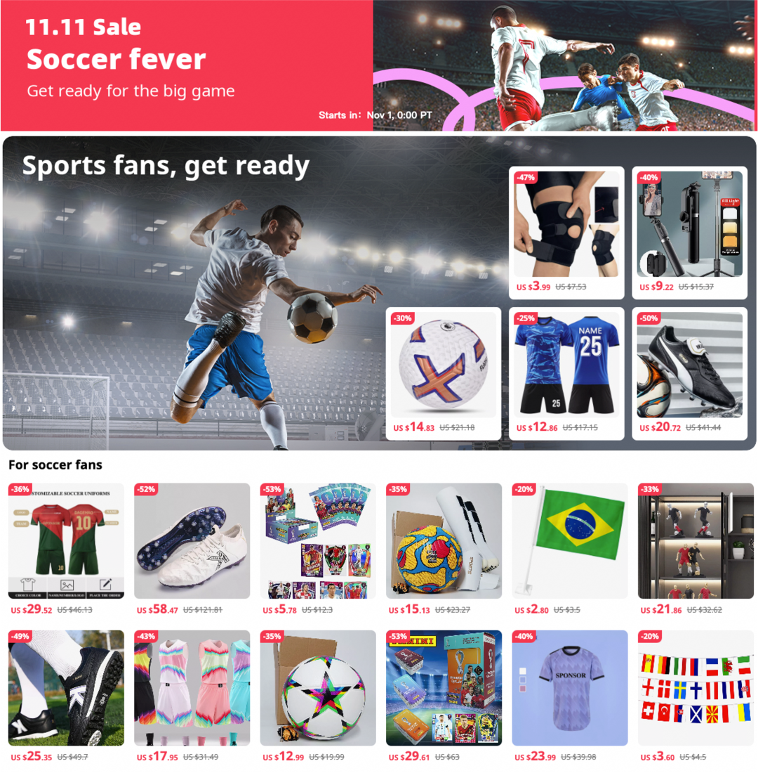 除了投影仪,10月27日,全球速卖通公布世界杯经济六大消费趋势,球星卡、足球服、足球、小旗子等产品深受海外球迷喜爱。距离双十一还有4天时间,全球速卖通开设的世界杯专场已经有近1000万中国制造蓄势待发。