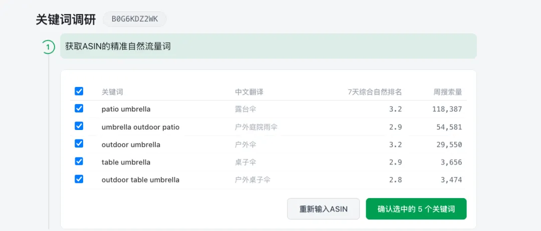 1.打开Sif的关键词调研功能,输入ASIN