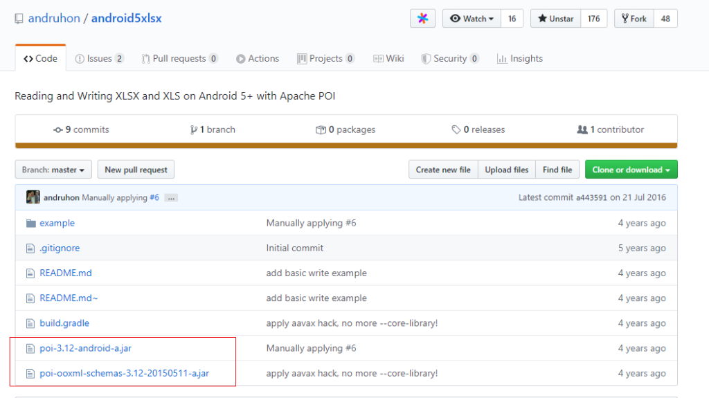 最后找到的一个比较轻便简单的方案是,通过一个国外的开发者对POI包进行简化后的库android5xlsx,保留了在Android5以上解析xls和xlsx的功能(开发者本人吐槽在android5以下解析Excel真有点绕)
