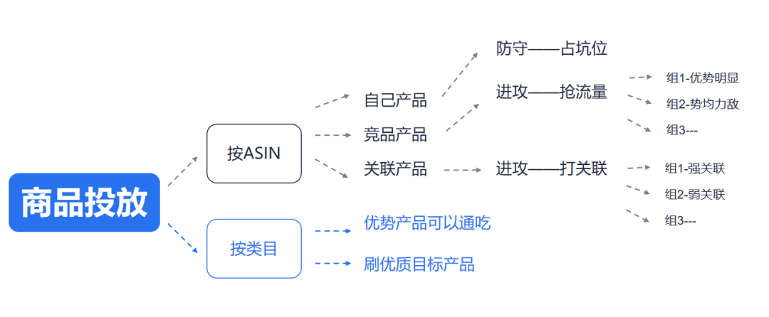 按照ASIN的类型又可以细分为自身产品、竞品产品和关联产品三类打法。
