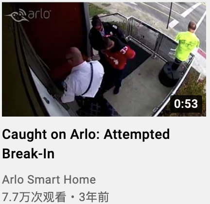 YouTube 视频记录了摄像头如何监测到疑似犯罪人员试图闯进居民家中的行为,并进行了及时报警,让警务人员能非常快速赶到现场,保证了居民的人身和财产安全。