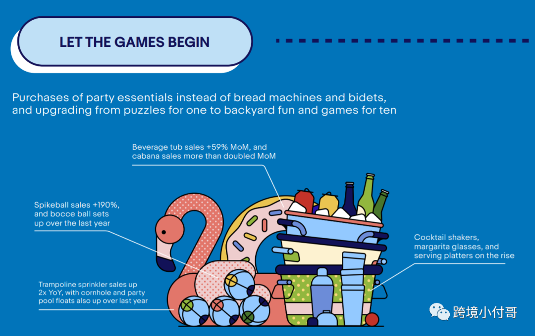1,6 月的数据显示,庆祝活动的规模很大。从后院游戏、烤架和户外娱乐配件到敞篷车、露营车和独木舟,购物者一直在拥抱充满乐趣和冒险的夏天的物品;