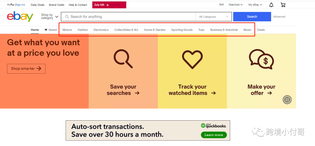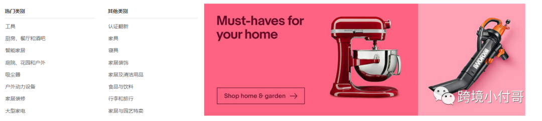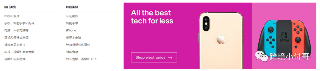 我们再来看一下eBay平台前台的类目展现: