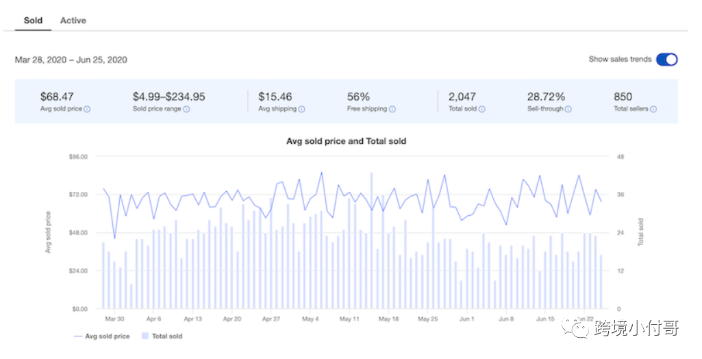 您可以使用 Terapeak Product Research 来分析一段时间内的价格、销量和产品可用性趋势。通过分析这些数据,您可以规划您的库存和定价结构,更好地了解供需变化,并确定您可以预期的销售量。该工具还允许您按项目条件或销售格式进行过滤。分析各种价格和条件的产品。![]()