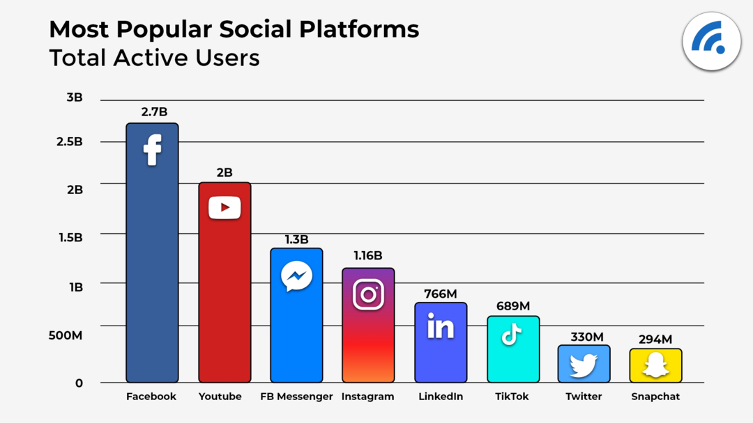 ✔Facebook以74%的份额成为领头羊,而TikTok是增长最快的平台,拥有近7亿活跃用户,就在两年前才仅有3000万!!