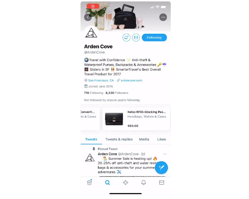 AMZ123获悉,近日Twitter正在推出一个新的功能模块"ShopModule",该模块可以帮助品牌、企业和其他零售商直接在企业个人资料上向推特用户展示产品,用户能够滚动浏览模块中的产品图片并点击购买。该模块将出现在Twitter个人资料的顶部,美国用户可以在iOS设备上以英语查看该模块。据悉,只有经过认证的企业才能使用这一功能。认证成功后的企业、非营利组织、出版商和创作者能够直接在个人资料上