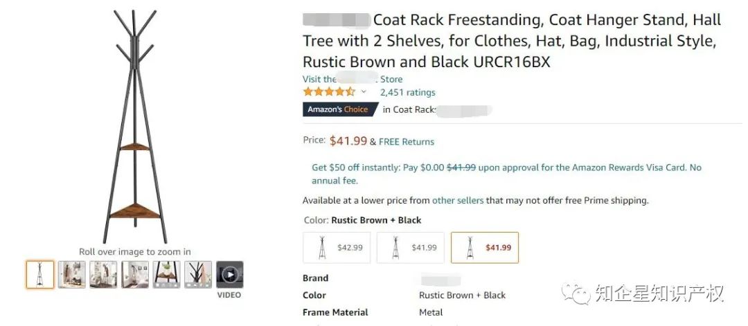 今天在浏览亚马逊的时候,看到一款衣帽架,它是美亚站的Amazon'sChoicein Coat Racks ,售价41.99美金,留评2464颗星。