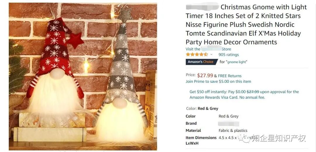 今天在浏览亚马逊的时候,看到一款圣诞侏儒灯,它是美亚站的Amazon'sChoicefor "gnome light'',售价27.99美金,留评905颗星。