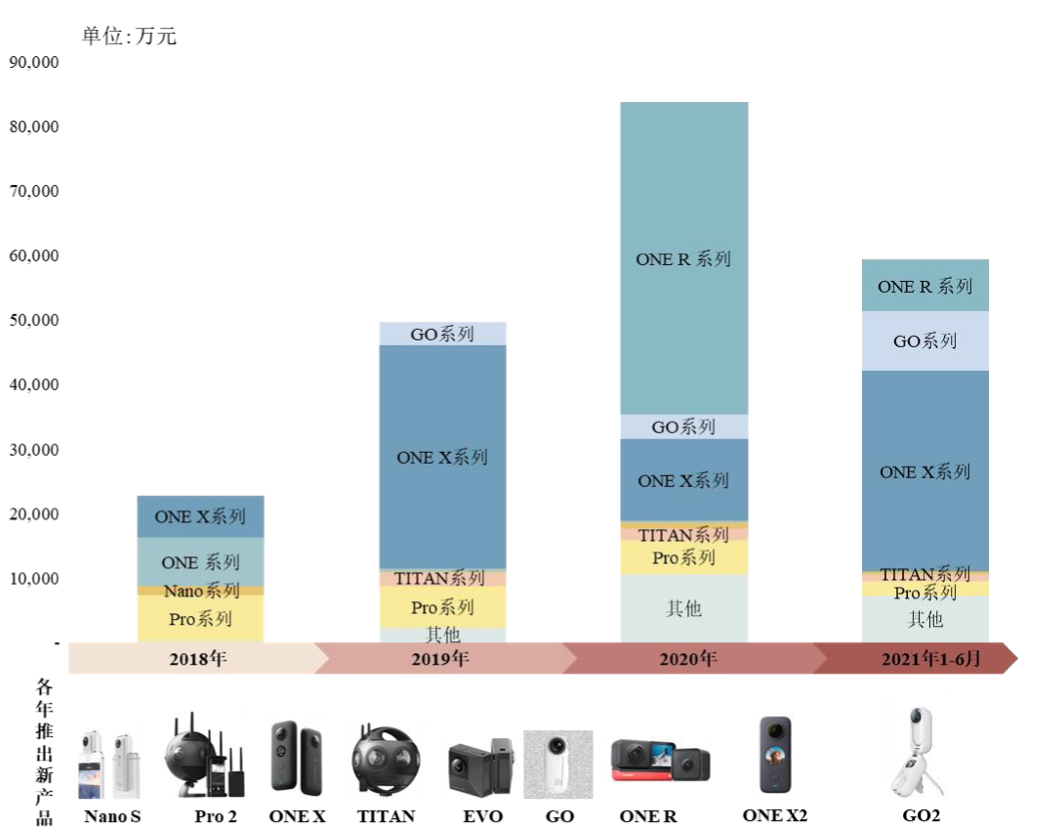 ONE X系列产品就是当中一个典型。这个系列产品在2018年10月推出 ,结合了全景拍摄和FlowState防抖科技,无需额外稳定器即可在极限运动等抖动较强的场景下拍摄出平稳流畅的画面,同时配件丰富多元,搭配不同的配件可实现不同的创意效果。该款产品在2018年第四季度实现了6609万元的收入,在2019年度持续热销,实现了 3.46亿元的收入。