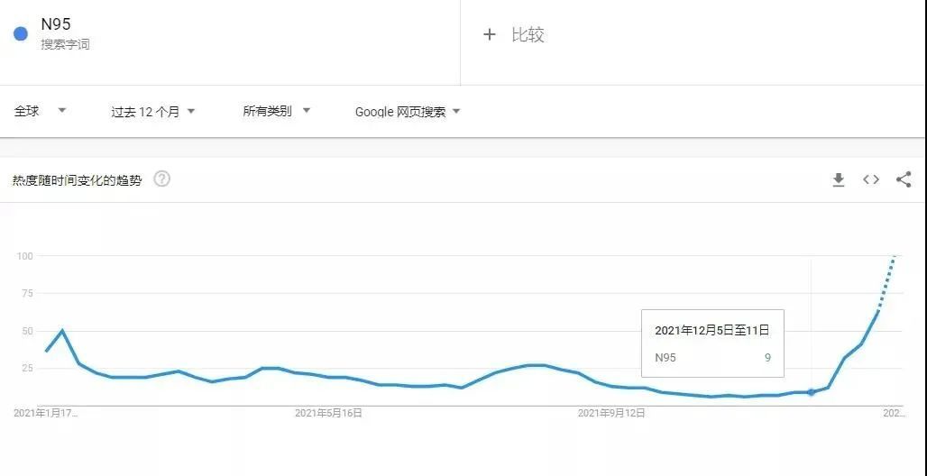据Google Trends相关数据显示,去年12月起,关键词"N95"在美国的搜索量直线飙升。