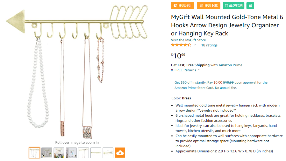今天分享的产品是MyGift品牌店铺中的一款"壁挂式箭头设计项链/钥匙挂钩",可以钉在梳妆台墙上挂项链首饰,也可以用来钉在玄关处挂钥匙和帽子,也可以用来钉在厨房挂锅铲等厨房用品,用处多多。
