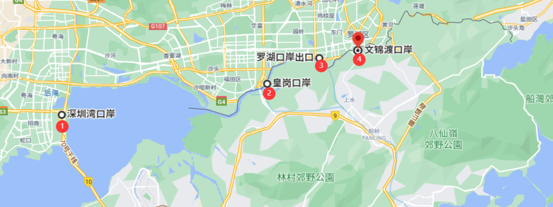 分别是罗湖、文锦渡、皇岗、沙头角、深圳湾、福田、莲塘口岸;