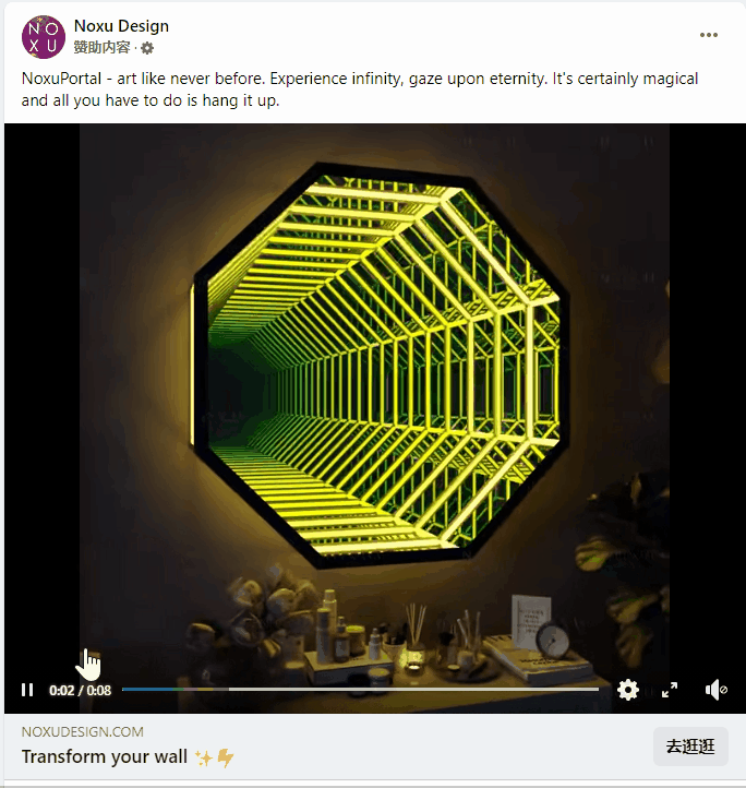 (上图为facebook广告:酷炫的视频展示)