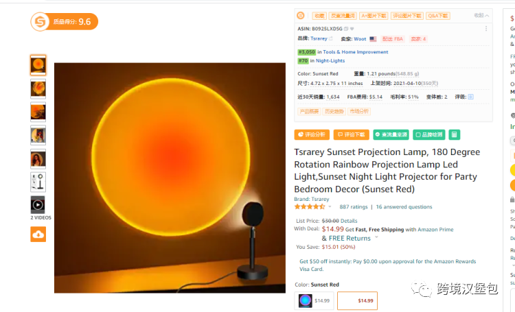 说到投射类氛围灯印象最深刻的莫过于日落灯了。对于专利的成功规避,使得每个厂家都在争相开模生产;加上Tiktok的广泛传播,使得各个卖家都在做这款产品。虽然我们未必能分一杯羹,但是可以研究一下背后成功的道理,日落效果打在身上,让照片多了几分迷幻;让用户有分享欲,带起社交传播,是这种投射类氛围灯的成功之道。下一个能有日落灯这种话题性的灯饰也不知道什么时候能出现。