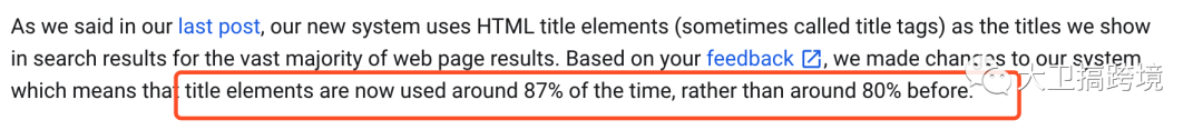 Moz从去年算法更新后追踪了10000个SERP,发现Google自动改写了差不多58%的title,不过谷歌自己官方发布的blog说目前是对目前所有收录的页面改写率达到87%。