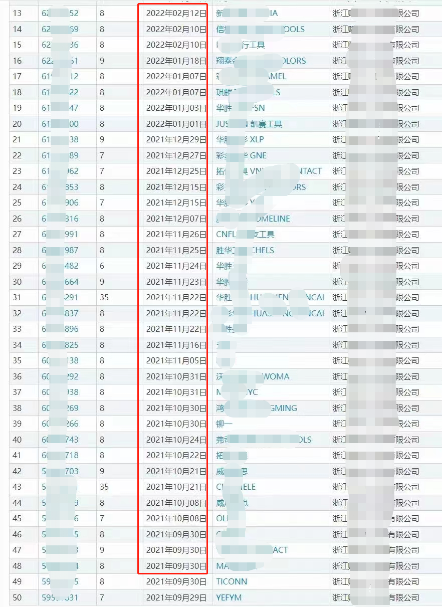 目前暂时不知道是只有这些类目的商标在国内被注册申请了,