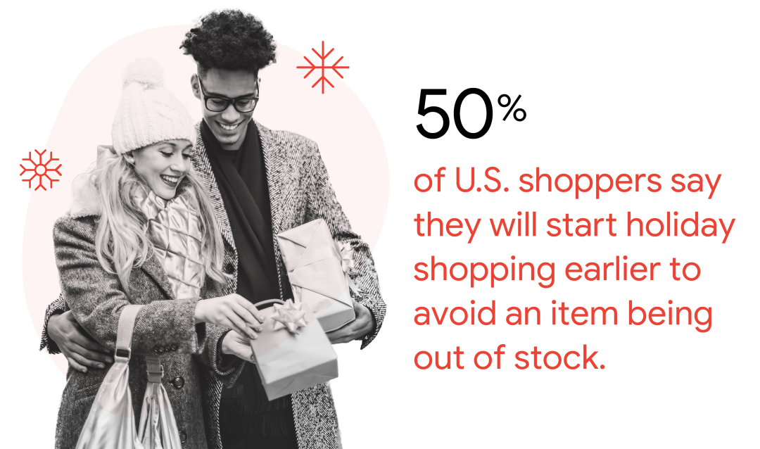 而且根据往年购物季调查,我们发现库存问题是消费者关心的问题,超过 50% 的接受调查的美国消费者表示他们会提前开始假日购物,以避免商品缺货。