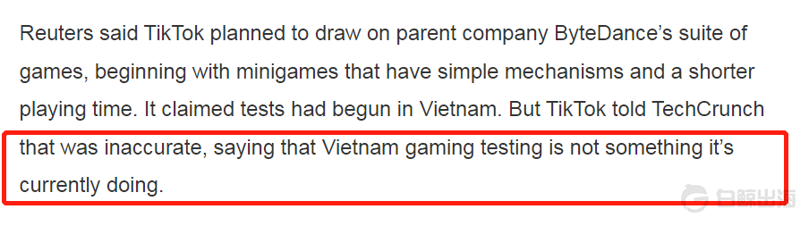 路透社今天的一份报告显示,TikTok 正在进一步投资 H5 游戏。其计划借鉴母公司字节跳动的游戏业务模式,从机制简单、游戏时间较短的小游戏开始。据了解,TikTok 已经在越南开始测试。而TikTok 内部人给到媒体的回复,也很含糊,没有直接反驳在越南做游戏测试的事实,而是说"在越南做游戏测试,并不是 TikTok 目前在做的事情。"总之怪怪的。