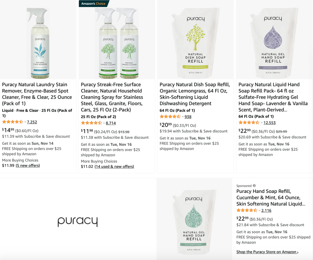 这两年亚马逊个护品类大爆发,亚马逊个护原生品牌Puracy去年还被亚马逊品牌并购公司Branded全资收购。