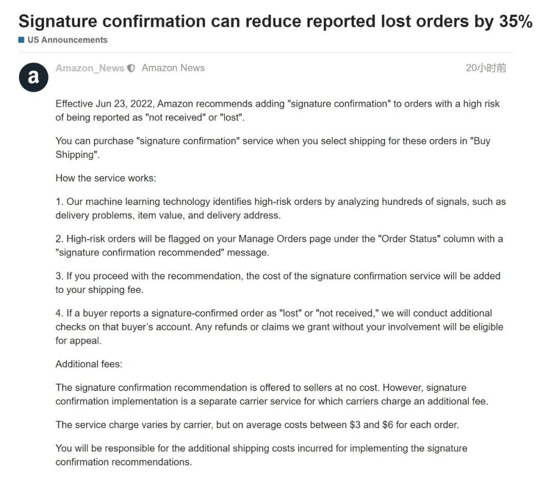 不过同时这个签名确认服务并不是免费的,会按照订单的实际情况收取3-6美元左右的额外费用。