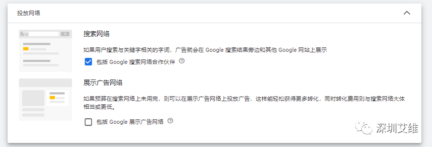 展示广告网络:在搜索网络上未用完的预算,将会在展示广告网络上继续投放广告(一般不建议勾选)