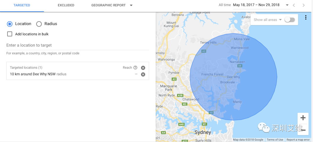 广告系列中的广告可以向居住在特定地理位置的用户或对特定地理位置感兴趣的用户展示,同时你也可以排除一些自己不想要投放的一些国家。而语言定位可根据用户的语言设置和网站所使用的语言来限制广告的展示位置。