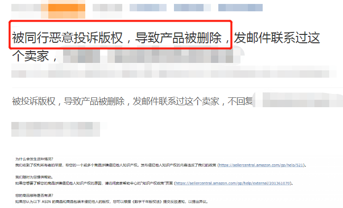 在某论坛,就有不少卖家在吐槽亚马逊上各种侵权(商标、专利及版权)恶意投诉,其中版权恶意投诉最为高发,原因是版权侵权的取证较为困难,亚马逊的受理概率比较大。