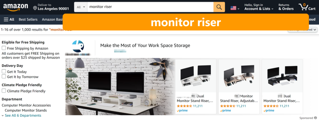 由此可见,"computer stand"和"monitor table"的商品显然与小爱想卖的"抬高电脑显示器"不相关。而"monitor riser"和"monitor stand"虽然外形差距较大,但都可以起到"抬高电脑显示器"的功能,所以它们属于统一细分品类下、相关性达标的关键词。