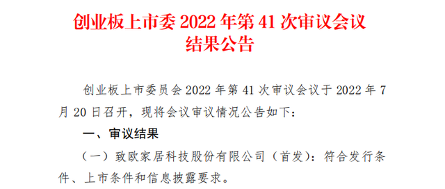 7月20日,深交所公布了致欧家居科技股份有限公司(以下简称致欧科技)在创业板IPO首发申请通过审核的消息。