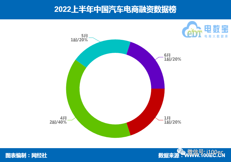 据网经社旗下电商大数据库"电数宝"(DATA.100EC.CN)监测数据显示,2022年上半年汽车电商融资事件数共5起,融资总金额超过1.5亿元。投资方包括:成为资本、角兽营、国宏嘉信、红杉基金、海纳亚洲、愉悦资本、蔚来资本等。
