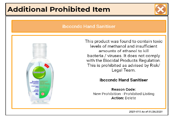 CB 卖家禁止售卖这个牌子的消毒液,不符合杀菌产品法规标准,不能上传和售卖,将会直接被 Listing 删除