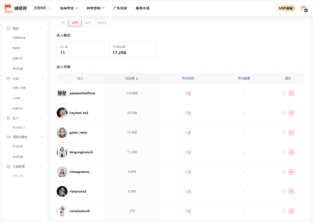 通过嘀嗒狗数据可发现,这款女士纯色休闲长衬衫价格实惠,单件最多仅需Rp47.999,折合人民币为0.022元,在过去的一个月,共有11位达人进行了短视频带货,带货视频的平均播放量为1.7万。