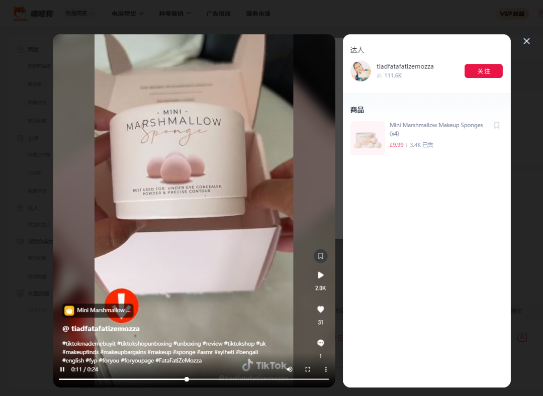 该产品的带货达人通过开箱视频来进行带货,从包装到产品细节的展示,突出了产品的质量和使用效果,从而达到种草的目的。