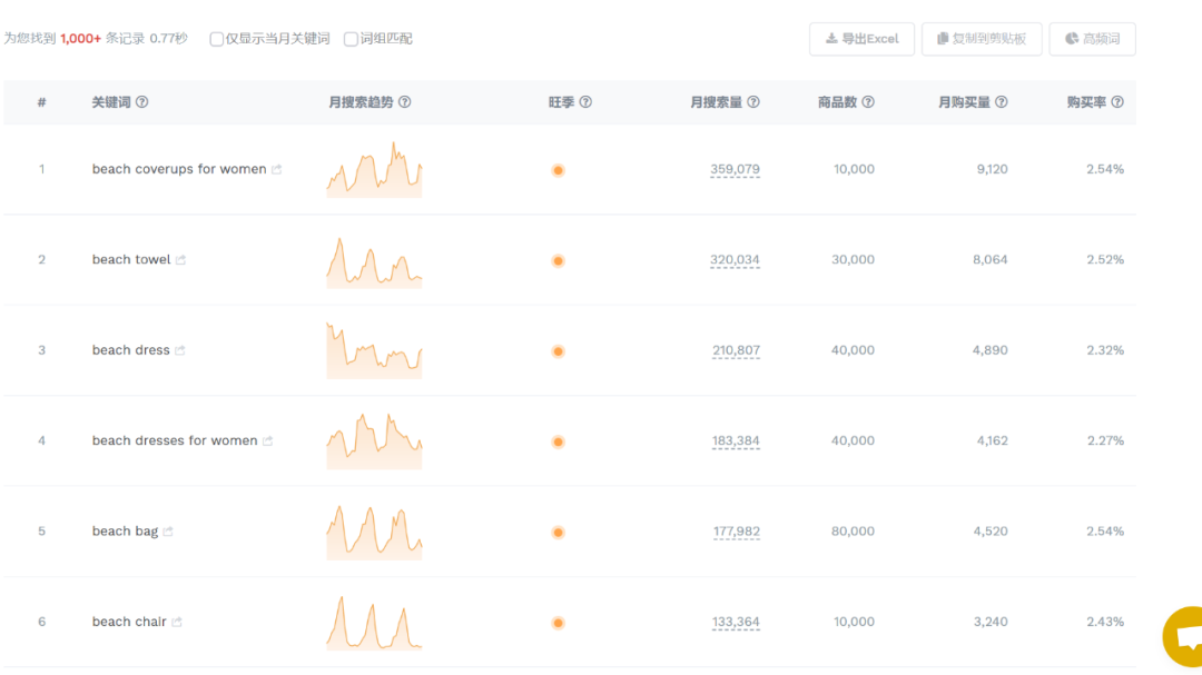 1、第一步当然是找到哪些季节性相关的产品,我的方法是通过关键词入手,打个比方我要做夏季的产品,一般会考虑夏季会出现的场景比如沙滩beach,冰ice,游泳Swim,泳池pool,(ps举个例子大家可以以此类推),然后以这些词拿去任何一个关键词工具一搜索会出来一堆跟夏天或者你这个场景有关系的关键词,到这里第一步我们能知道很多相关的产品,同样的不止说放到关键词的搜索工具,还可以同样的操作方法放在facebook。
