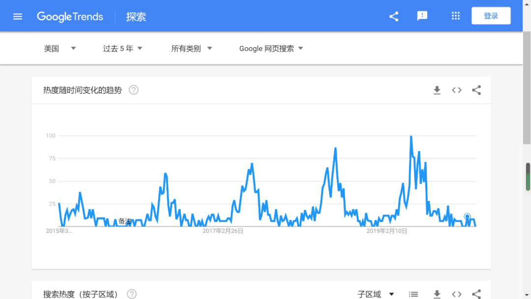 2、需要确认你目前所处的季节以及该产品流量上升以及流量峰值处于什么时候,这里用到谷歌趋势就ok了,当然要注意的是一半季节性产品在流量开始上升的时间节点的前一个星期就要到货,因为也许需要留足够的链接前期建设的时间,而在销量比较理想的情况下也可以根据这种季节性流量的情况来去计算我们该不该补货,或者说怎么捕货才能不在季节结束之后造成大量的库存积压,这里还有一点提醒一半看近五年的数据时间阶段选择更加准确。