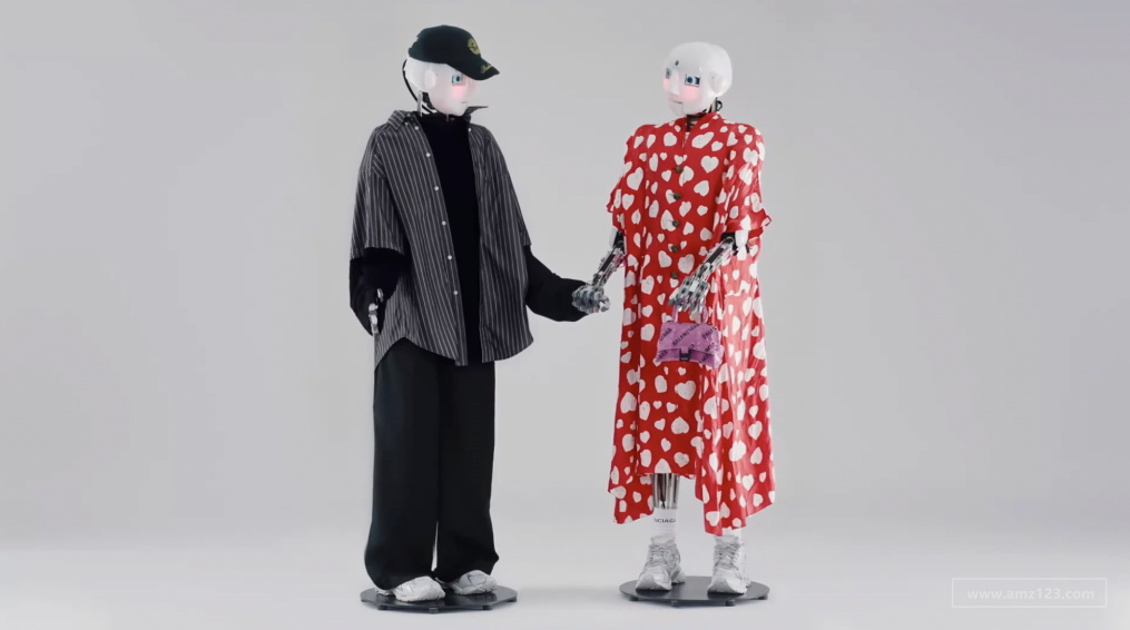 巴黎世家为其七夕22系列注入了未来主义色彩。此次的"情侣模特"由两位机器人扮演,该机器人由英国著名的仿人机器人设计和制造商British Engineered Arts打造,世界最先进的仿真机器人"阿美加"就是出自他手。 而此次的七夕限定宣传片则由时尚摄影师Andrea Artemisio掌镜拍摄,这两位机器人身着巴黎世家服饰,略显呆萌可爱。有意思的是,两位机器人还会"害羞脸红",将科技与浪漫之间的碰撞体现的淋漓尽致。
