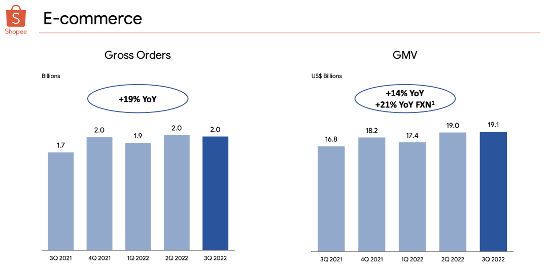 其中,电商部门 Shopee 的营收为 19 亿美元,同比增长 32.4%;总订单数 20 亿,同比增长 19.2%;GMV 191 亿美元,同比增长 13.5%。