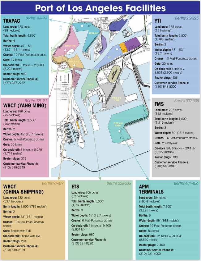LA港口设施图以及停靠集装箱码头: