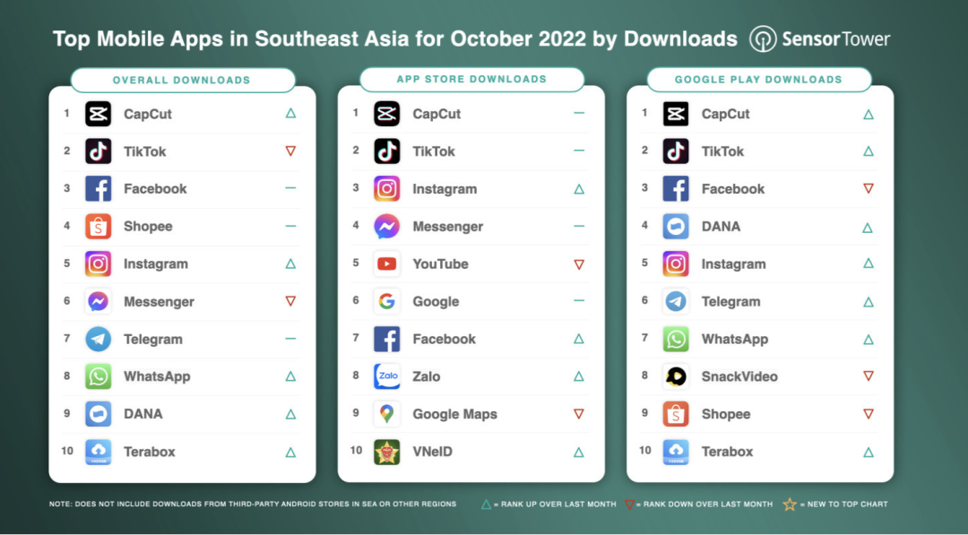 最近,Sensor Tower 发布了2022 年 10 月东南亚地区下载量最高的 App 排行榜。