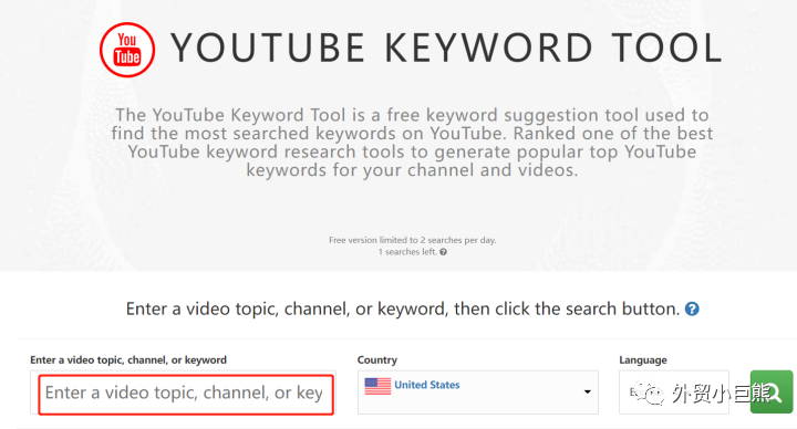 这是一个无需注册的免费关键词建议工具。用来寻找YouTube上搜索量最大以及排名最好的关键词,为你即将发布的视频生成最流行的关键词/标签。